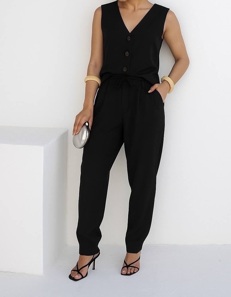 Descubra a Calça Alfaiataria Cós de Elástico, a escolha perfeita para quem busca aliar elegância e praticidade. Com um design moderno, essa calça é ideal para o ambiente de trabalho ou para um encontro casual com amigos.